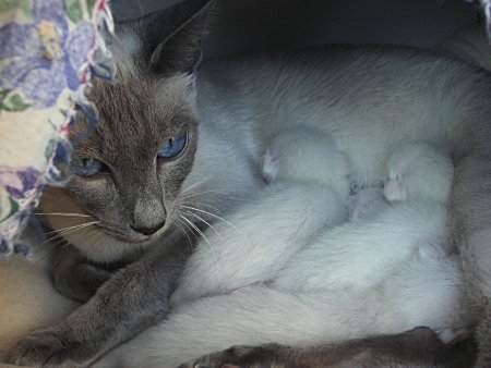 Vanessa-Joy of Chiang Mai hat am 18.02.06 ihren ersten Wurf bekommen: Drei Käterchen und eine Kätzin.