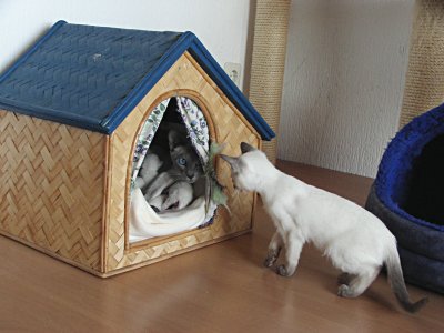 Schneewitchen werden sich drei Käterchen und eine Kätzin in den Farben bluepoint und lilacpoint ent- wickeln.