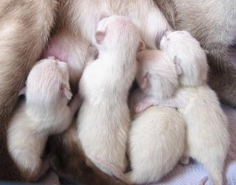 wird. Die Babies kommen meist in Abständen von 15 Minuten bis einer Stunde. Bei einem großen Wurf gibt´s meist eine größere Pause, wenn die “vorderen” Babies nach hinten gelangen müssen. Auf dem Bild