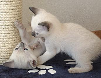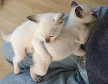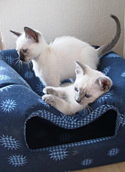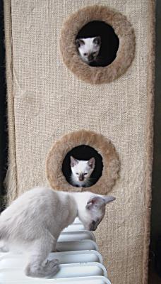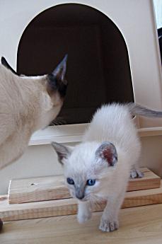 In der fünften Lebenswoche verlassen die Kleinen das Nest und machen Oberkaters Arbeitszimmer unsicher.